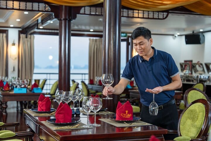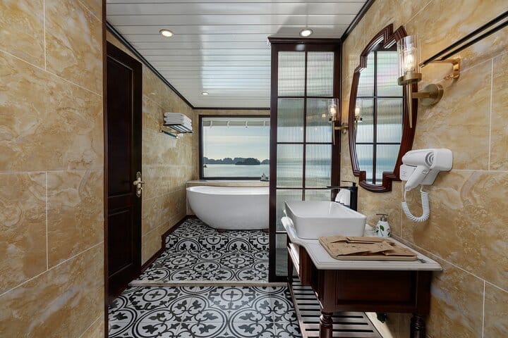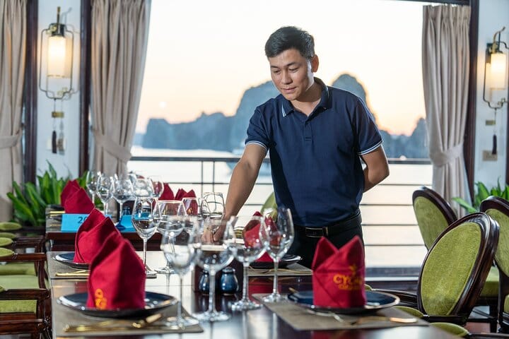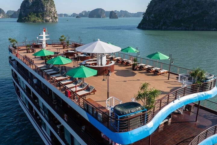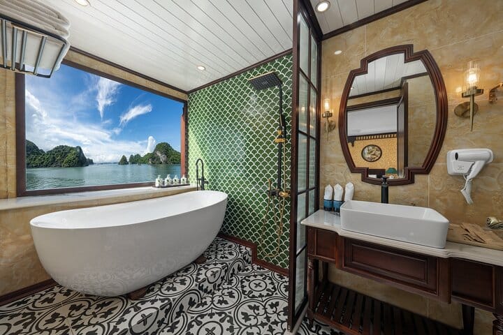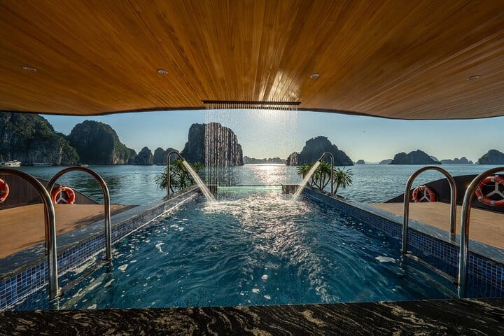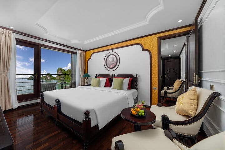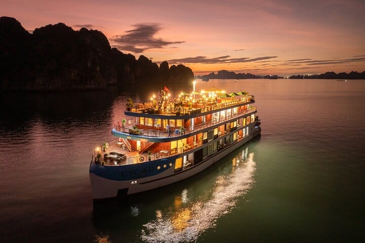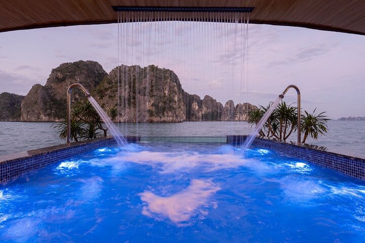 Immerse yourself in an ultra-luxurious, contemporary escape aboard our 6-star, 2-day cruise through the pristine landscapes of Bai Tu Long Bay. Far from the crowds of Ha Long Bay, this serene voyage invites you into a world of refined comfort and tranquility. Relax in spacious, elegantly appointed suites, savor exquisite gourmet cuisine, and enjoy flawless, personalized service at every turn. Explore hidden caves, kayak across crystal-clear emerald waters, and watch breathtaking sunsets illuminate the dramatic limestone karsts. Every detail of this journey is thoughtfully curated for effortless relaxation, enriching discovery, and timeless elegance.